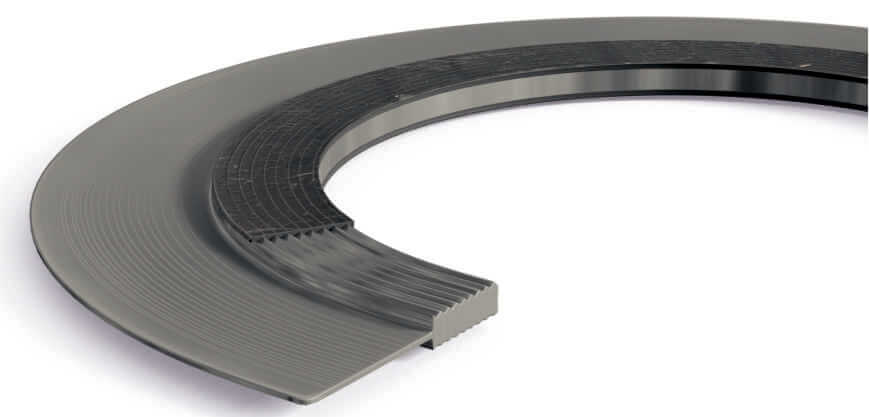 Uszczelka wielokrawędziowa TECHWK z nakładką z płyty uszczelkarskiej. Uszczelnienie tego typu wykonane jest ze specjalnego profilu stalowego z koncentrycznymi rowkami oraz miękkiego materiału uszczelniającego. Cechują się szerokim zakresem stosowania pod względem temperatur oraz ciśnienia roboczego.